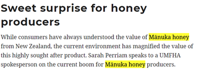 claimed that Manuka Honey was unique to NZ and this therefore allowed some